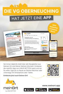 Sie bekommen das Mitteilungsblatt nicht bzw. nicht regelmäßig? Sie wollen unsere Nachrichten auch von unterwegs aus auf Ihrem Handy/Tablet/PC lesen? Dann scannen Sie doch gleich den Barcode ein und laden sich unser neues App herunter. Unter „Mehr, Mein meinOrt“ legen Sie als Hauptort die „VG Oberneuching“ an. Dann finden Sie sowohl die Mitteilungsblätter (inkl. Archiv), Neuigkeiten, Events und Informationen der VG. Veranstaltungen & Events können mit einem „klick“ praktisch in Ihren Kalender übertragen werden. Wir hoffen, dass Sie rege davon Gebrauch machen werden und freuen uns auf Ihr Feedback.