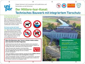 2025 hat Uniper entlang des Kanals rund 300 Wildausstiegshilfen angebracht und deren Auffindbarkeit für die Tiere verbessert. Zur Information rund um die Anlagen gibt es Hinweistafeln, auf denen die Gefahren für Wildtiere aufgeführt sind, die von freilaufenden Hunden ausgehen können. Die Wildausstiegshilfen befinden sich im Kanal beidseitig etwa alle 400 Meter, im Bereich Neufinsing sogar alle 200 Meter. Sie wurden gemeinsam mit dem Bayerischen Landesjagdverband entwickelt. Grundsätzlich helfen diese Wildtierausstiege auch anderen Tieren, wie z. B. Hunden.