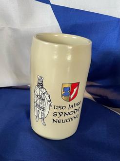 Ab sofort kann der Bierkrug der 1250 Jahre Synode Neuching für 10,00 EUR pro Stück zu den Öffnungszeiten (Montag bis Freitag von 08:00 Uhr bis 12:00 Uhr und am Mittwochnachmittag nach telefonischer Absprache unter 08123/9326-78) der Kasse in der Verwaltungsgemeinschaft Oberneuching erworben werden.
