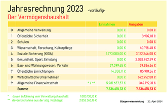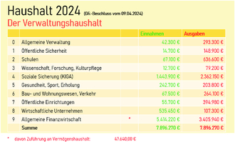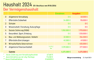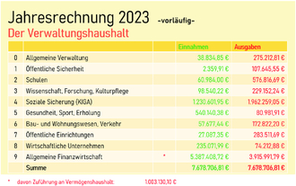 Im Anschluss geht er insbesondere auf die vorläufige Jahresrechnung 2023 und den noch nicht genehmigten Haushalt 2024 ein.