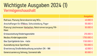 Hier ging Bürgermeister Bartl explizit auf die beiden Großprojekte der Gemeinde ein und auf die kommenden Veranstaltungen in diesem Jahr. Weiter stelle er die wichtigsten Zahlen des Haushaltes 2024 und der Jahresrechnung 2023 vor: