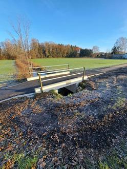Jetzt müssen wir uns um die nächste Brücke kümmern, die Wimpasinger Brücke über die Bahngleise. Hier sind wir vom TÜV aufgefordert, aufgrund der Mängel an der Brücke aktiv zu werden und die Tonnage weiter zu beschränken. Wir haben uns im Gemeinderat darauf verständigt, dass wir die Durchfahrt auf 3 Tonnen beschränken und die Fahrbahn so verengen, dass neben Fußgängern und Zweiradverkehr nur noch PKWs durchfahren können. Der Schwerlastverkehr und vor allem der landwirtschaftliche Verkehr muss leider einen kleinen Umweg in Kauf nehmen. So können wir die Brücke noch eine Weile weiter nutzen, bis wir dann – so die Planung – die Baustraße entlang des Bahndamms übernehmen, die im Zuge des zweigleisigen Ausbaus der Bahn entstehen muss. Auf die förderfähige Ersatzstraße möchten wir aktuell und möglichst auch dauerhaft gerne verzichten. Die Baustraße scheint uns eine gute Alternative zu sein.