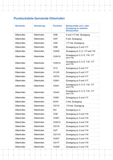 Die von den geplanten Kartierungen betroffenen Flurstücke entnehmen Sie bitte den Flurstückslisten. Diese liegen öffentlich in den Rathäusern aus und können auf der Website der Gemeinde oder unter www.tennet.eu/oba-ott eingesehen werden. Zu beachten ist, dass nicht alle Flurstücke innerhalb des Untersuchungsraums zwingend betreten werden müssen. In vielen Fällen reicht eine Begutachtung der Fläche von befestigten Wegen aus.