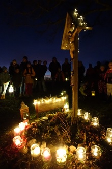 Am Samstag, den 16.12.2023 hat der Pfarrgemeinderat Kienberg, zum zweiten Mal zum „Christkindl Suacha“ eingeladen. Bei sternenklarer Nacht haben sich zahlreiche Kinder, Jugendliche und Erwachsene warm angezogen und mit Laternen auf den Weg gemacht. Bei insgesamt drei Stationen wurden Weihnachtslieder gesungen, gebetet und es gab einen kurzen Impuls. Wegweisend waren viele Lichter, sowie Querflötenmusik – die uns zu der leeren Krippe des Jesus Kindes führten, dieses Jahr fanden wir diese am Pfarrer Berg. Natürlich konnten wir das Jesus Kind nicht finden, da noch nicht Heiligabend war. Aber wir konnten uns auf den Weg machen und uns auf sein Kommen vorbereiten.
