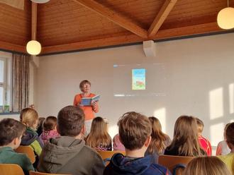 Im Januar bekamen die Kinder der Grundschule Kienberg-Peterskirchen Besuch von der Autorin Rosi Hagenreiner. In ihren Lesungen für die Klassen 1/2 bzw. 3/4 stellte sie zunächst die Figuren aus ihren Max-Büchern vor und erzählte, wie sie zu den Ideen für ihre Max-Erzählungen kam und welche Geschichten einen wahren Kern haben. Mit Witz und oft in Dialekt las sie den Kindern einzelne Episoden vor und erntete dafür viele Lacher. Am Ende beantwortete sie noch geduldig alle Fragen ihrer Zuhörer. Vielen Dank für den unterhaltsamen Vormittag!