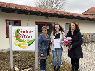 Ihre tägliche Arbeit zeichnet sich durch Sensibilität, hohe fachliche Kompetenz, große Fürsorge und ganz viel Herz aus. Alle Eltern und Kinder gratulieren ihr herzlichst zu dieser überwältigenden Leistung und sind sehr glücklich darüber, dass sie die Kita St. Martin in Kienberg täglich zu einem Wohlfühlort für alle macht. Im Namen des ganzen Teams gratuliert ebenso Kita-Leitung Irmgard Miess der beliebten Kollegin Sarah Brandstetter zu ihrer herausragenden Arbeit. Das ganze Team freut sich, dass Sarah der Einrichtung erhalten bleibt und ihr großes Fachwissen sowie überdurchschnittliches Engagement weiterhin der Kita zur Verfügung steht.