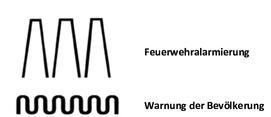 jeweils durch zwölf Sekunden Pause unterbrochen sind (siehe untenstehende Abbildung – oben). Ertönen die Sirenen einmalig, dafür aber für die Dauer von einer Minute und mit einem auf- und abschwellenden Heulton, sollen Bürgerinnen und Bürger dazu veranlasst