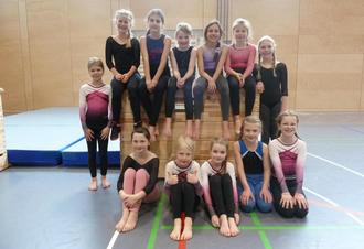 Bei der Siegerehrung durften Miriam (3), Christina (3), Romina und Johanna (4) für alle eine selbstgewählte Kür vorturnen. Das war toll!