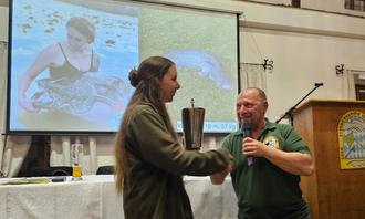 Unter großen Beifall der Versammelten nahm Patricia Frank den Pokal für den größten gefangenen Fisch 2025 entgegen. Im Juni war Ihr nach hartem Drill der Fang eines kapitalen Wallers mit 2,19 Metern Länge und 57 Kilogramm Gewicht geglückt. Neben dem Rekordergebnis des Vorjahres handelt es sich damit um den längsten Fisch, der nach den Aufzeichnungen des Vereins jemals am Obinger See gelandet werden konnte.
