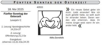 Am Samstag, den 17. Mai findet für die Kinder der Grundschule wieder ein Kinderbibeltag in und um die Kirche statt. Das Thema ist: „Wunder - Gestern - Heute - Morgen“. Der Beginn ist um 10 Uhr, das Ende gegen 13.30 Uhr. Die Anmeldung erfolgt über die Grundschule.