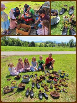 Rund ums Pittenharter Festzelt "a bissl nett gestalten" war das Motto für die Pittenharter Trachtenkinder. Sie trafen sich bei Maria Eder in Oberbrunn zum Bepflanzen alter Gegenstände. Dazu spendete Michael Kießling aus Pittenhart, bekannt als "Kaktus-Michi", viele verschiedene