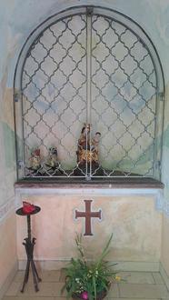 Hans und Anni Babinger stellten den Platz unter den Linden zur Verfügung und die Kinder begannen mit den Erdarbeiten und dem Bau der Bodenplatte. Mit großer Unterstützung und fachkundiger Anleitung von Sepp Maier mauerten die Kinder, die Ziegel dazu stellten sie in der Werkstatt der Familie Meissner in mühevoller Handarbeit her. Vom Maurer, dem Sepp Maier wurde das Bauwerk dann auch fachgerecht fertiggestellt, das heißt die Altarnische und auch das Gewölbe gemauert, innen und außen schön verputzt, die Bodenfliesen verlegt und außen am Eingangsbogen die Keramikteil angebracht.