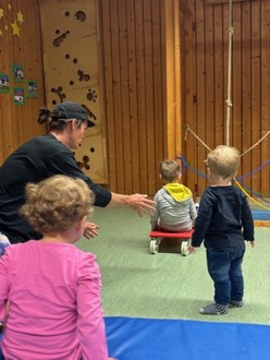 Da der Kindergarten an diesem Tag auf Jahresausflug war, bot sich die einmalige Gelegenheit, das gesamte Gebäude für die Krippenolympiade zu nutzen. Zahlreiche abwechslungsreiche Stationen warteten auf die Kinder: