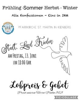 Freitag, 13. Juni: Wir laden Sie in Obing um 14.00 Uhr zum Fatimarosenkranz und um 19.00 Uhr zum Gebet für den Frieden ein.