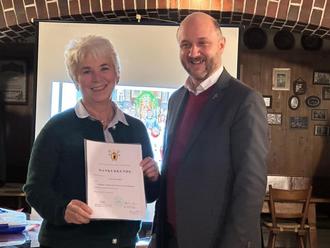 Im Rahmen der Chorfeier ehrte Pfarrer David Mehlich die Chorsängerin Maria Mußner für ihre 25-jährige Treue zum Albertaicher Kirchenchor.