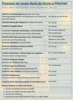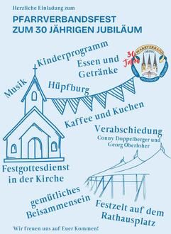 Zum Jubiläumswochenende 30 Jahre Pfarrverband laden wir zu allen Veranstaltungen herzlich ein. Am Freitag, 25. Juli beginnen wir mit der langen Nacht der Kirche um 18.00 Uhr in Pittenhart.