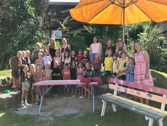 Die Kinder des St. Aloisius Kindergartens in Pittenhart freuen sich über einen neuen Tisch und sechs Bänke für den Außenbereich. Eine Bank wurde bereits als Abschiedsgeschenk von den letztjährigen Vorschulkindern an den Kindergarten überreicht, welche großen Anklang bei den Kindern fand.