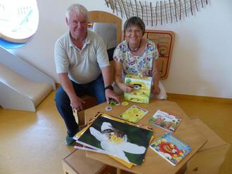 Wenige Wochen später gabs ein freudiges Wiedersehen. Klaus und Hannelore Schütz besuchten die Kinderkrippe und begutachteten die Bücher und Spiele aus ihrer Spende.