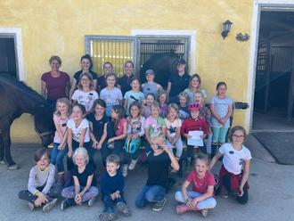 23 Kinder durften bei verschiedenen Stationen viel über Pflege, Stall und Futter der Pferde lernen und natürlich das heißersehnte Führen und Reiten ausprobieren. Ihr erlerntes Wissen könnten die Kinder abschließend in einem Quiz unter Beweis stellen. Zum Abschluss gab es noch eine süße Belohnung für alle.