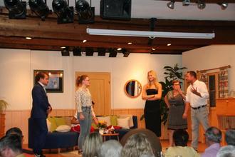 Die Spielerinnen und Spieler der Theatergruppe des TV Obing überzeugten erneut mit ihrem Talent und ihrer Hingabe. Und zwar nicht nur die „alten Hasen“ Manfred Köhler (Fabrikant Meienberg), Christina Dobler (Frau Meienberg) und Michael Kriechbaumer (Boxer), besonders auch die neuen Leute Christof Jost (Willy) in seiner erst zweiten Rolle sowie die beiden Debütantinnen Julia Dobler (Lisa) und Julia Köhler (Giulia) spielten fulminant auf und rissen das Publikum in ihren Bann.