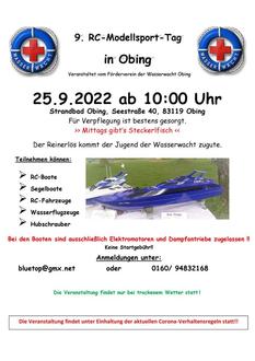 Der Förderverein der Wasserwacht Obing freut sich, dass nach Corona bedingter Pause dieses Jahr endlich wieder ein Modellsport-Tag stattfinden kann. Termin ist Sonntag, der 25.09.2022.