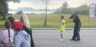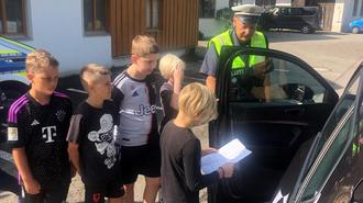 Am Donnerstag, 14.09.2023 waren die beiden vierten Klasse der Grundschule Obing an der Kienberger Straße mit der Polizei „stationiert“. Die Polizisten Herr Doppelberger und Herr Veit erwarteten uns bereits zur Aktion „Schokolade oder Zitrone“. Dort durften wir die Polizeibeamten dabei begleiten, die Geschwindigkeit von vorbeifahrenden Autos zu kontrollieren. Das Projekt soll Autofahrer auf die Bedeutung der Einhaltung der angepassten Geschwindigkeit gerade in Bezug auf die Schulkinder aufmerksam machen.