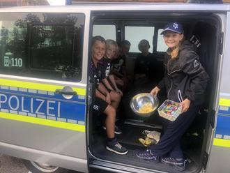Uns haben die netten Polizisten die restlichen Zitronenscheiben und die Schokolade angeboten. Herr Pürner, an dessen Parkplatz die Aktion stattgefunden hat, hat uns einen riesigen Karton mit Süßigkeiten mitgegeben.