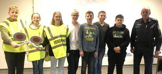 Viele Bürgerinnen und Bürger aus Obing und Pittenhart leisten ihren wertvollen Dienst als Schulweghelfer an der Querung in Obing, von Pfaffing kommend und an der Einmündung in Pittenhart. An der Ampel in Obing leisten die ausgebildeten Mittelschüler ihren Dienst als Unterstützung beim Überqueren der Straße, insbesondere für die Grundschüler am Morgen. Gerade bei Beginn der Rotphase für die Fahrzeuge kann es jedoch zu Situationen kommen, bei denen eine zusätzliche Erkennung durch einen Schulweghelfer mit Warnweste und Kelle Unfällen vorbeugen kann. Besonders für die jüngeren Schülerinnen und Schüler ist diese Hilfe beim Überqueren der Straße sehr wichtig. 7 Schülerinnen und Schüler der 8. Klassen der Mittelschule Obing haben sich bereit erklärt, die vertiefte Ausbildung, durchgeführt von Herrn Doppelberger der Polizeiinspektion Trostberg, anzunehmen und sich einer Abschlussprüfung zu stellen. Diese theoretische und praktische Ausbildung wurde von allen teilnehmenden Schülerinnen und Schülern bestanden und somit können sie ab Januar die bereits aktiven Mittelschüler der 9. und 10. Klassen ergänzen. Geplant werden die Einsatzpläne und Zeiten von Frau Patricia Wimmer gemeinsam mit dem Schülerkoordinator Tim Voit. "Ich freue mich über die dauerhafte Verantwortungsbereitschaft aus der Schülerschaft über die vergangenen Jahre. Unsere Jugendlichen übernehmen hier die Initiative für die Sicherheit der jüngeren Schüler unserer Schule. Das ist nicht selbstverständlich, weil es mit besonderem Aufwand verbunden ist. Dieses Engagement freut mich sehr.", so Schulleiter Thomas Duxner zum erfreulichen Abschluss der Prüfung zum Schulweghelfer.