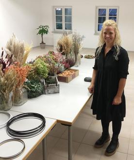 Die Obinger Frauen haben einen Workshop zum Binden von Trockenblumenkränzen organisiert, der so beliebt war, dass nach zwei schnell ausgebuchten Terminen ein zusätzlicher Termin mit Sonja Baumann vereinbart werden konnte.