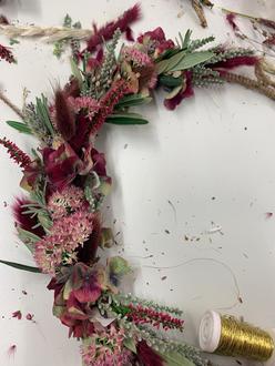 Zusätzlich zu den grünen Kränzen wird es auch Trockenblumenkränze geben. Alle Frauen sind herzlich eingeladen mitzumachen!