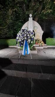 Zum Gedenken an die über 120 gefallenen und vermissten Krieger der Gemeinde legte Reinhard Schreiner, im Namen der KSK Pittenhart einen Kranz nieder. Zu den Klängen vom „guten Kameraden“, gespielt von der Seeoner Blaskapelle, senkten sich bei der Totenehrung die umstehenden Fahnen und 3 Böllerschüsse halten über den Ort.