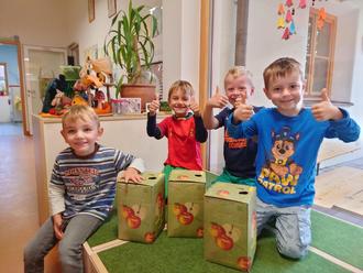 Der Kienberger GBV spendet frisch gepressten Apfelsaft, aus Äpfeln von der Kienberger Streuobstwiese, an die Kita St. Martin und die Mittagsbetreuung der Grundschule Kienberg.