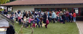 Am 07.10.22 duftete es in Kienberg herrlich nach Würsteln, Folienkartoffeln und frischem Stockbrot. Die Kindertagesstätte St. Martin lud zum Kartoffelfest im großen Garten ein. Alle drei Gruppen sangen zur Begrüßung und Einstimmung drei fröhliche Lieder, die die Eltern und Gäste zum Mitsingen und Mittanzen animierten. Zu „Wenn im Dorf die Bratkartoffeln blühn“ hielt es keinen mehr auf seinem Platz und alle marschierten gemeinsam in einer Polonaise durch den Garten. Getragen von der guten Laune zog es im Anschluss alle Gäste zu den Feuerstellen, um dort die mitgebrachten Lebensmittel zu grillen. Währenddessen konnten die Kinder ausgelassen an den Spielgeräten spielen und sich auf das gute Essen freuen. Gemeinsam wurde auf Picknickdecken gemütlich getrunken und gegessen. Die Eltern hatten die Möglichkeit das Personal kennenzulernen, Kontakte zu neuen Eltern zu knüpfen oder zwei entspannte Stunden bei Feuer, guter Laune und leckerem Essen zu genießen. Ein großer Dank geht an die Erzieherinnen der Kindertagesstätte St. Martin für die Idee und Organisation des Kartoffelfestes.