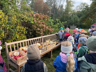 Mit offenen Armen empfingen uns Nina und Michi Stettner auf ihrem Hof „Glückswerk“. Schon beim Ankommen wärmte uns ein prasselndes Lagerfeuer und während die Flammen knisterten, erfuhren wir Spannendes über den Hof und seine Tiere. Nach einer kleinen Spielpause begann unsere Apfel-Entdeckungsreise: Mit allen Sinnen lernten wir verschiedene Apfelsorten kennen - fühlten die glatte oder raue Schale, rochen den fruchtigen Duft und staunten, wie unterschiedlich die Äpfel schmeckten.