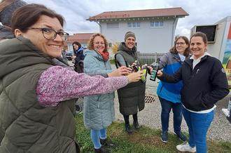 für die jungen Mütter der Siedlung ein guter Grund auf den gelungenen Naturspielplatz anzustoßen
