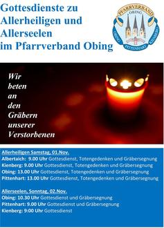 Am Donnerstag, 06. Nov. ist von 9.00 Uhr bis 12.00 Uhr die Anbetung in der Pfarrkirche Obing. Um 10.00 Uhr ist das Gebet für geistliche Berufungen. Wir laden herzlich ein, daran teilzunehmen.