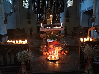 In der wunderschön von der Mesnerin Lisi Unterauer dekorierten Kirche vom bevorstehenden Erntedankfest entstand eine ganz besondere Atmosphäre. Viele Kerzen erhellten das Gotteshaus. Durch viele Lieder mit stimmungsvoller musikalischer Begleitung und Gebete entstand eine Einheit in Gott. Diesmal standen die einzelnen Länder und der Frieden auf der Welt im Mittelpunkt.