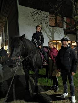 Die Vorfreude auf das Martinsfest war zum Greifen nahe. Vergangenen Freitag war es endlich so weit. Groß und Klein trafen sich draußen vor dem Kindergarten um hinter St. Martin (Eva Maier auf Pferd Lena vom Mörnerhof/ Heretsham, Links) mit ihren Laternen zur Mehrzweckhalle zu ziehen. Auf der Gemeindewiese neben der Mehrzweckhalle wurde, das Martinsspiel gezeigt und der Gottesdienst von Pfarrer David Mehlich (rechts) abgehalten. St.Martin gab dem frierenden Bettler (Celina Flemm, Mitte) ein Stück seines Mantels ab. Musikalisch begleitet wurde das Ganze von den Jungbläsern der Musikinitiative Pittenhart unter der Leitung von Klaus Stöcklhuber. Zum Abschluss spendierte die Bäckerei „Jim&Joe“ für jedes Kind eine Martinsgans. Anschließend konnte der Abend gemütlich bei Punsch, Glühwein und Leberkäsesemmel (Verkauf vom Kindergarten-Förderverein in Zusammenarbeit mit dem Elternbeirat) ausklingen.
