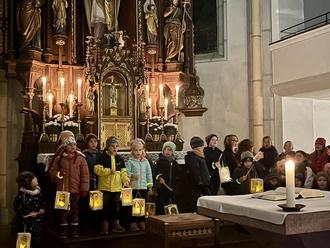 Zu Beginn trafen sich alle Kinder in der Kita, um sich auf das Fest einzustimmen. Die meisten waren schon sehr aufgeregt und konnten es kaum erwarten, dass es dunkel wird, damit sie ihre Laternen anzünden können. Gleichzeitig warteten bereits alle Familien in der Kirche. Schon aus der Ferne hörte man die enthusiastisch singenden Kinder, die gemeinsam in die Kirche einzogen.