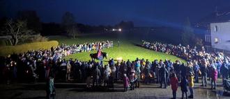 Auf der Wiese am Kindergarten fand dann eine Andacht mit Pfarrer David Mehlich statt. Sehr stimmungsvoll wurde gemeinsam gesungen und das Martinsspiel ums Feuer aufgeführt. Abschließend wurden die gebackenen Martinsgänse gesegnet und natürlich auch verspeist. Der Elternbeirat sorgte mit Punsch, Glühwein, Lebkuchen und Leberkäsesemmeln für das leibliche Wohl. Der Erlös kommt dem Förderverein/Elternbeirat der Kita zugute - "ganz im Sinne des heiligen Martin: teilen und Freude schenken,“ betonte die Leiterin Monika Hechenberger.