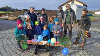 Nach altem Brauch soll das Bauteil ausgelöst werden und so musste der Pittenharter Bürgermeister, als Bauherr her. Vergangen Freitag war es dann soweit, per Gokart mit schwerer Last wurde der fröhlich geschmückte Holzbalken zur Baustelle transportiert. Zäh waren die Verhandlungen zwischen den Kids und Bürgermeister Sepp Reithmeier und so wurde erst nochmal eine Runde durch die Siedlung gedreht. Zu verlockend waren dann doch die, vom Bauherrn angebotenen Wurstsemmeln, Brezen und Getränke mit denen er die Kinder zur Herausgabe des Holzstückes letztlich überzeugen konnte. Gestärkt wurde dann das Diebesgut bis zum Einsatzort transportiert und mit wachen Augen von den Kids wurde die Montage verfolgt. Zum Schluss gab es noch ein Erinnerungsfoto und Süßigkeiten vom Bürgermeister. Zufrieden und glücklich zogen die Kids ab und warten ganz gespannt auf den weiteren Fortgang der Arbeiten an ihrem heiß ersehnten Spielplatz den die Gemeinde im Rahmen eines Leaderprojekts errichtet und auch gefördert bekommt. Eine Besonderheit dieser Planung ist, dass der naturnahe Spielplatz im Bereich der Randeingrünung und Ausgleichsfläche des Baugebietes Hinzinger Länder – Planbereich C, liegt.