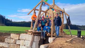 Die Kids aus der Siedlung „Hinzinger Länder“ können es kaum erwarten bis der Naturspielplatz am westlichen Siedlungsrand fertig ist. Vor ein paar Wochen wurden mit dem offiziellen Spatenstich die Bauarbeiten begonnen und diese nehmen mittlerweile richtig Form an. Einzelne Bereiche zeichnen sich schon deutlich ab und mit großer Begeisterung werden die Arbeiten von den Kindern verfolgt. Mit viel Eigeninitiative sind die Eltern mit bei der Sache, nach dem Motto „viele Hände – schnelles Ende“. Egal ob mit Schaufel, Hammer oder Akkuschrauber, die Eltern der jungen Siedlung bringen sich mit großem Engagement beim Bau des Spielplatzes ein.