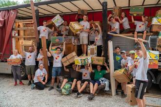Eine Gruppe von „Junge Leute helfen“ beim Abladen im Kosovo. Hilfe die direkt ankommt und verteilt wird.