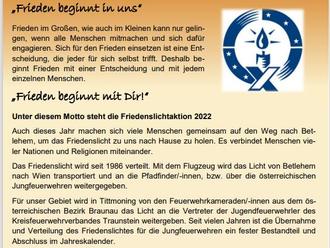 Das Friedenslicht kommt in unsere Kirchen in den Gottesdiensten um 19.00 Uhr. In Pittenhart am Dienstag, 20. Dez., in Obing am Mittwoch, 21. Dez. und in Kienberg am Donnerstag, 22. Dez.