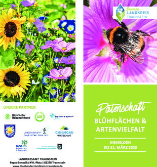 | - | Anmeldung beim Maschinen- und Betriebshilfsring Traunstein e.V. unter mr.traunstein@maschinenringe.de, telefonisch per 08669 8655 – 0 oder online unter Patenschaft Blühflächen & Artenvielfalt (eveeno.com) |
