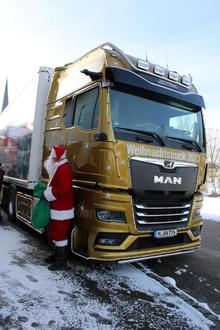 Am Montag 27.11.2023 hieß es für die Kinder des Pittenharter Kindergartens: „Schnell anziehen, die Überraschung kommt!“. Nichts ahnend zogen sich die Kinder ihre warmen Wintersachen an und schon ging es nach draußen vor die Türe. Nach kurzem Warten hörten wir ein lautes Hupen und ein riesiger, mit Lichterketten geschcmückter Lastwagen fuhr heran. Auf seiner Reise durch verschiedene Kindergärten legte der Weihnachtsmann einen kurzen Stopp bei uns ein und überreichte den Kindern sogar ein kleines Geschenk. Das Leuchten in den Augen der Kinder zeigte, dass die Überraschung gelungen war und ihnen noch lange in Erinnerung bleiben wird.
