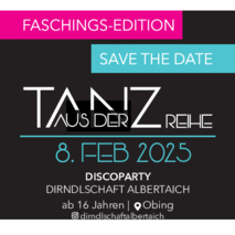 Am 8. Februar findet in Pfaffing bei Obing die Tanz aus der Reihe Discoparty statt. Dieses Jahr erstmals als Faschingsedition. Ab 21 Uhr sind alle Personen über 16 Jahre (ohne Muttizettel) herzlich willkommen. Die DJs Joe Lennox und DJ Reitei heizen auf der Main- und Malle-Area wieder mächtig ein. Wer spontan noch Interesse am Busspecial hat, einfach per Mail unter info@dirndlschaft-albertaich.de melden.