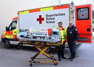 Dazu kommt seit Jahresbeginn ein brandneuer Inkubator vom Typ Dräger Ti 500 zum Einsatz. Betrieben wird er vom BRK Kreisverband Traunstein. Jakob Goëss, Leiter des BRK-Rettungsdienstes im Landkreis Traunstein, erläutert: „Ein Rettungswagen für den neuen Inkubator, der am Klinikum Traunstein stationiert ist, steht immer bereit. Das bedeutet für kritisch kranke Früh- und Neugeborene eine optimale Betreuung.“ Im Rettungswagen des BRK sorgen ein erfahrener Neugeborenen-Notarzt und eine Kinderintensivpflegefachkraft dafür, dass das Kind die notwendige Versorgung bekommt.