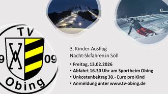 Es wird gestartet um 16.30 Uhr am Sportheim Obing, Rückkehr ca. 23.00 / 23.30 Uhr. Der Ausflug findet bei jedem Wetter statt. Zudem gibt es eine begrenzte Teilnehmerzahl. Der Skiausflug ist kein Skikurs, parallele Skiführung sowie eigene und passende Ausrüstung werden vorausgesetzt. Angesprochen dürfen sich alle Wintersportler der Jahrgänge 2010 und jünger fühlen. Die Kinder müssen kein Mitglied der Skiabteilung des TV Obing sein.