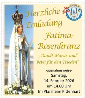 Am Freitag, 13. Februar beten wir den Fatima-Rosenkranz in Obing um 14.00 Uhr.
